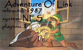 Released in 1987 for the NES.Adventure Of Link was not such a hit as the first Zelda. This reason is because Nintendo thought that if they used some RPG elements it would help. Which it didn't. To be honest this game confused me. I wasn't sure about how to power up or how to fight. So I think if you really want to play this game be a hardcore Zelda fan.