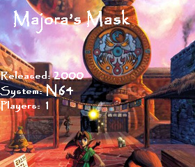 On October 26,2000, just two years after Ocarina of tome was released, Majora's Mask was released. Majoras Mask was, obviously,supposed to be a sequal to Ocarina Of Time, although alot of people debate about the whole sequal thing it was proven to be a sequal.